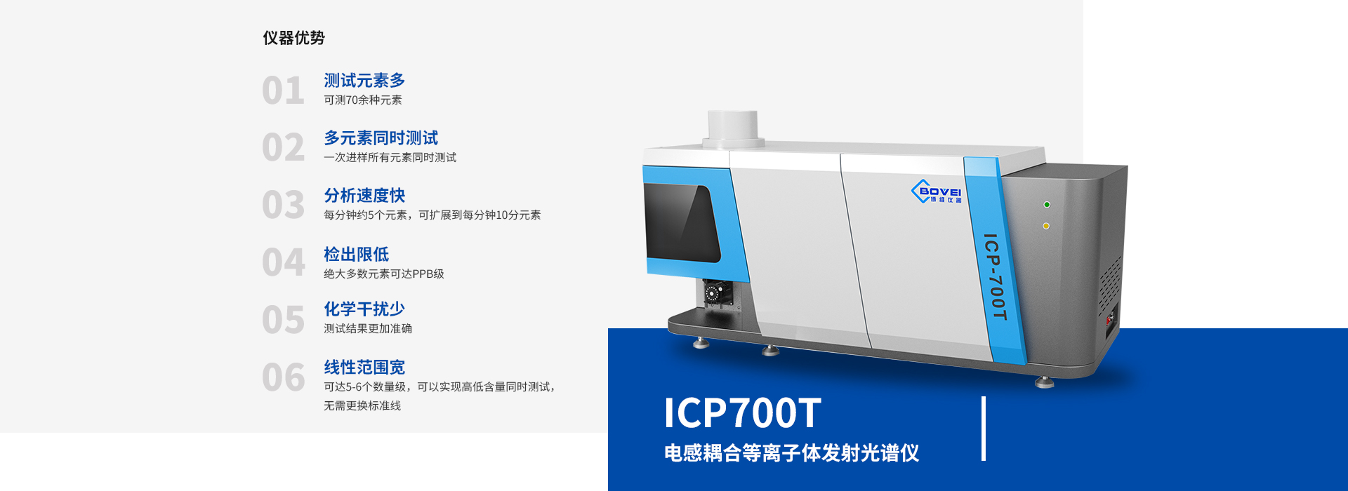 國產ICP光譜儀核心安全保護機制:1、氣體泄漏監測與報警系統實時監控氬氣/氧氣濃度:通過傳感器檢測工作氣體(如氬氣)是否泄漏,防止因缺氧導致窒息風險;若檢測到異常濃度會立即觸發聲光警報并自動切斷氣源。緊急排風聯動:部分機型可連接實驗室通風裝置,在氣體超標時強制啟動排風程序。2、射頻電源(RFGenrator)智能管控自動匹配負載調諧:內置微處理器動態調整高頻發生器的輸出功率,避免因阻抗失配引發打火或元件損壞;同時設置過流、過壓雙重保護電路。門聯鎖互鎖裝置:當儀器前門被打開時,...